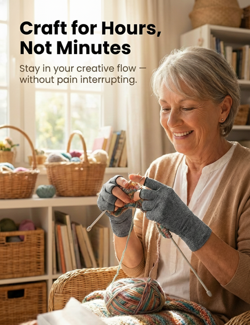 The difference: Targeted Relief Compression applies gentle pressure on joints while keeping your palms and fingertips free. Support without restriction.